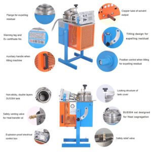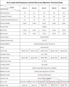 A10Ex, specially designed solvent purification system for small amount of organic solvent recovery. Tilting-type and air-cooled condensing system, safe structure are manufactured by Chinese explosion-proof standard (CNEX: Ex d IIB T2 Gb, certificate No. CNEx16.2108X) and European standard (ATEX). After distilling and cooling for proximate 1.5 hours, clean organic solvents will be ready for reuse.