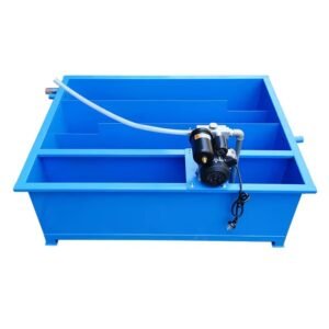 A closed loop wet blast cabinet only requires a compressed air supply and a power source to operate. Once you add abrasive and water to the cabinet, you recycle the water-abrasive slurry mix until you want to change it out. COLORSONG wet blast cabinet can be configured with an optional recirculating rinsing tank interconnected to the slurry hopper for a closed loop system. It can be fitted with a skimmer to remove floating oil or grease.