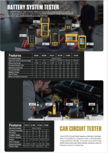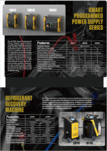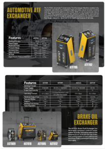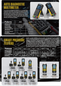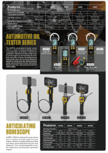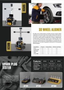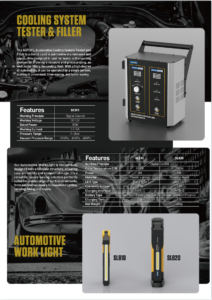Smoke Leak Detector / Fuel Injector Cleaner&Tester / 3D Wheel Aligner Machine/ Smart Articulating Borescope / Battery System Tester / Automotive Circuit Tester / Oil Analysis Tester / Engine Pressure Tester / Spark Plug Tester / Automotive Diagnostic Multimeter / Transmission Fluid Exchanger / All-in-One Power Supply Charger / Walnut Sand De-Carbon Cleaner / Dry Ice Blasting Machine/ Pulsating Brakde Fluid Exchanger / Smart Digital Manifold Gauge / Refrigerant Recovery Machine / Pneumatic Oil Drainer & Extractor / Automotive Maintenance Environment Tester / EV Charging / Automotive Maintenance tool Storage / Cooling System Tester and Filler / Used Car Diagnostic Tester / Automotive Key Frequency Tester