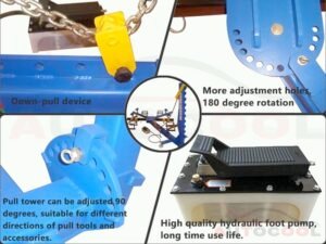 1.Movable working frame, less space, flexible moving, convenient operation, the pulling tower can fix at a point, then pulling at multi-point and in multi-direction.
