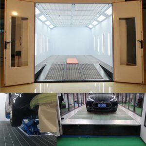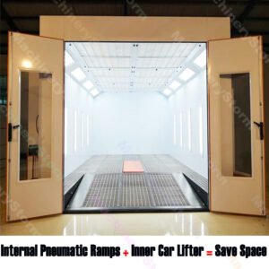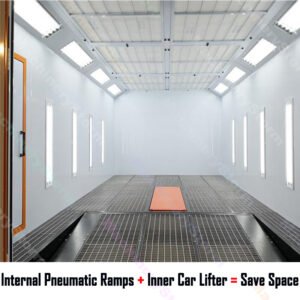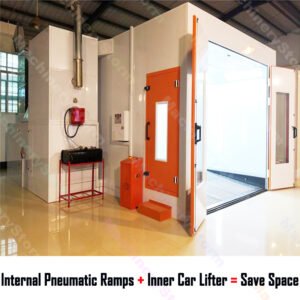 CAR PAINT SPRAY BOOTH WITH PNEUMATIC RAMPS AND CENTER SCISSOR LIFT CE CERTIFICATED