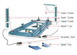 - High quality chains and plate tools are used flexibly and conveniently with long life. The entire series of tool accessories enable to do any misshape correction work.
