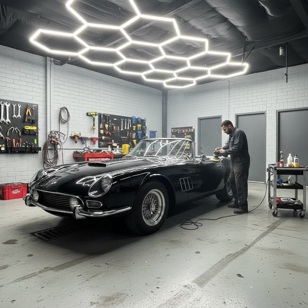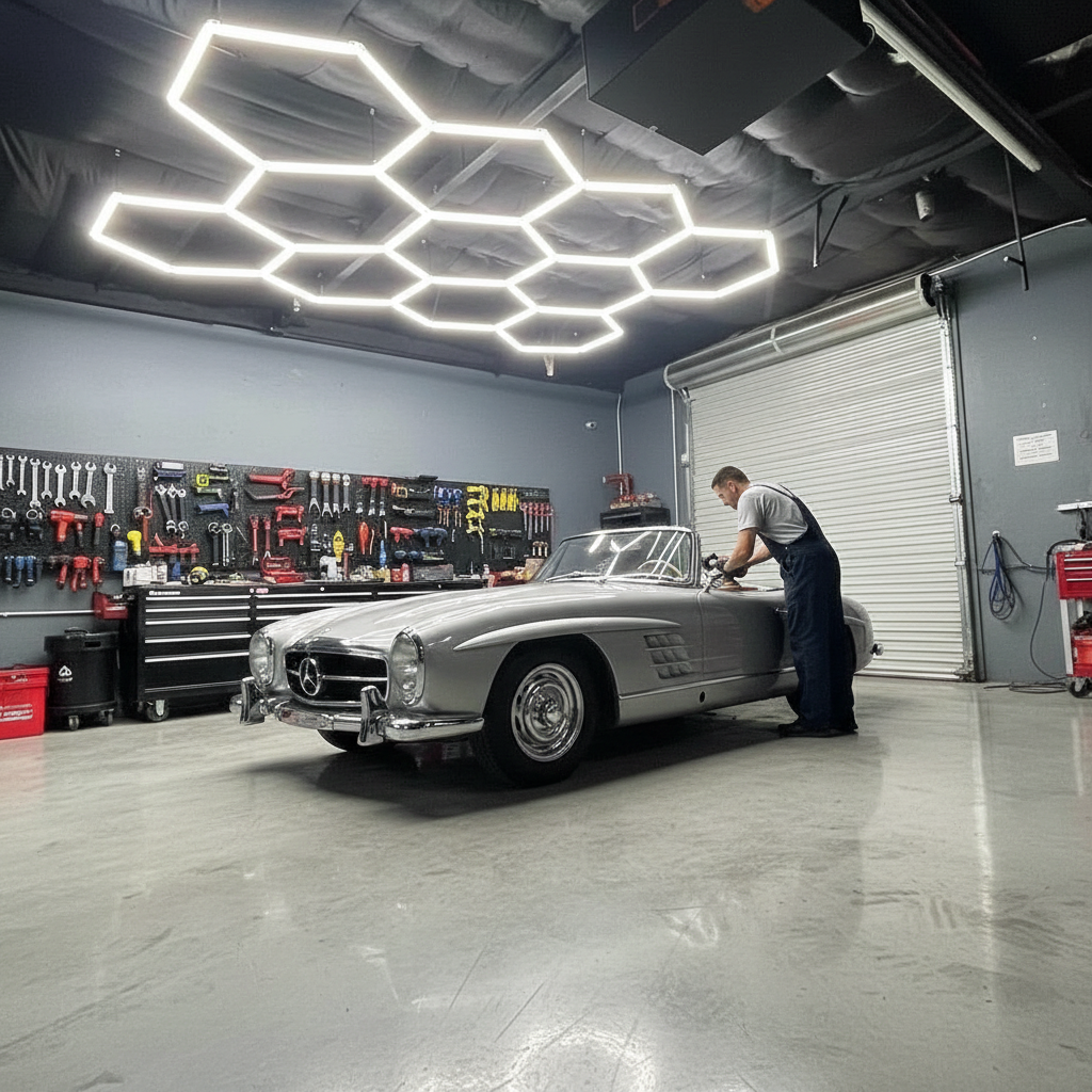Car Detailing Ready Hexagon Garage Lights 6500K High Lumen OEM Service Screw Mount Ceiling for Auto Detailing Shop