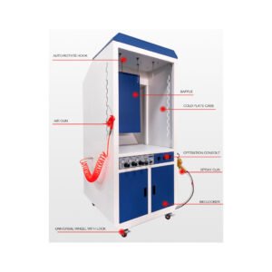 The manual coating booth ideal for small job powder coating or for powder coating testing, It is Small Value. Flexibility. Performance.