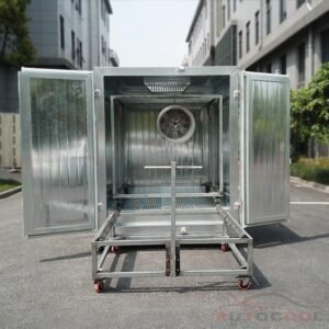 Insulation material is100mm thick rockwool board, density 120kgs/cbm, always keeping a warm chamber with least temperature dropping. Innerwall is heat-resistant galvanized steel, outer wall is anti-rust color steel, durable with a long service life.