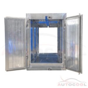 Track powder coating oven allows to installed with conveyor system to combine with tunnel powder coating booth for manual continuous production.