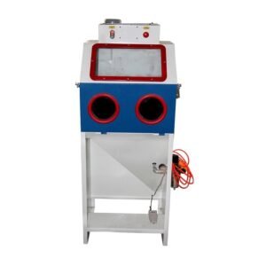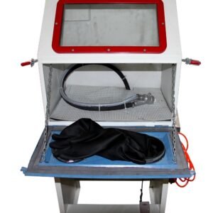 The small blast cabinet is a suction type blaster, which works by an air jet sucks the media up to the blast gun and the media is mixed in just before it exits through the nozzle. Though this method is not powerful as pressurized blasting, it meets most basic application but requires less budget and less maintenance.