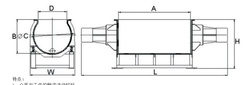 Especially suitable for polishing large stone, large stamping parts, auto parts, long rod-shaped metal and non-metallic parts.