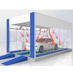 | Total fan Capacity Air flow speed in cabin | 45,000m³/h. 0.35m/s in empty booth , 0.4m/s in loaded booth | ||